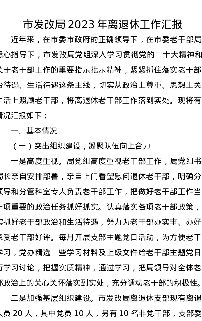 市发改局2023年离退休工作汇报