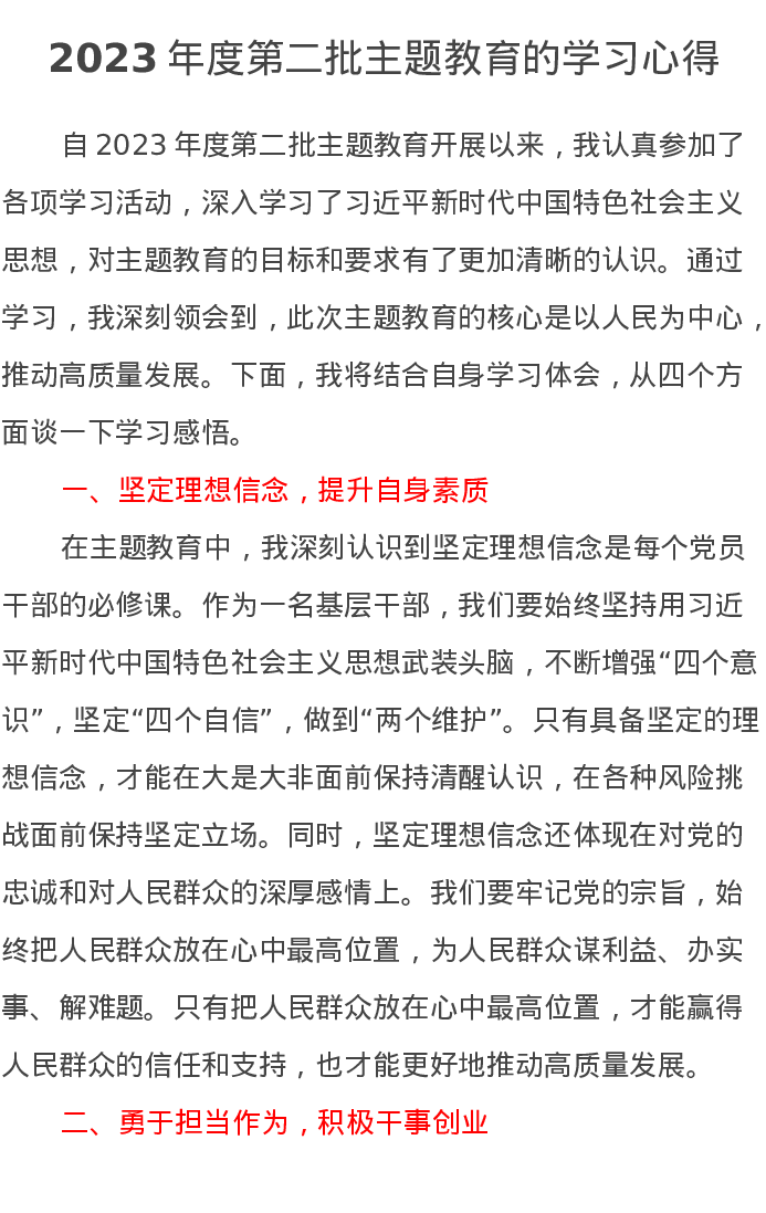 2023年度第二批主题教育的学习心得体会(特色社会主义思想)