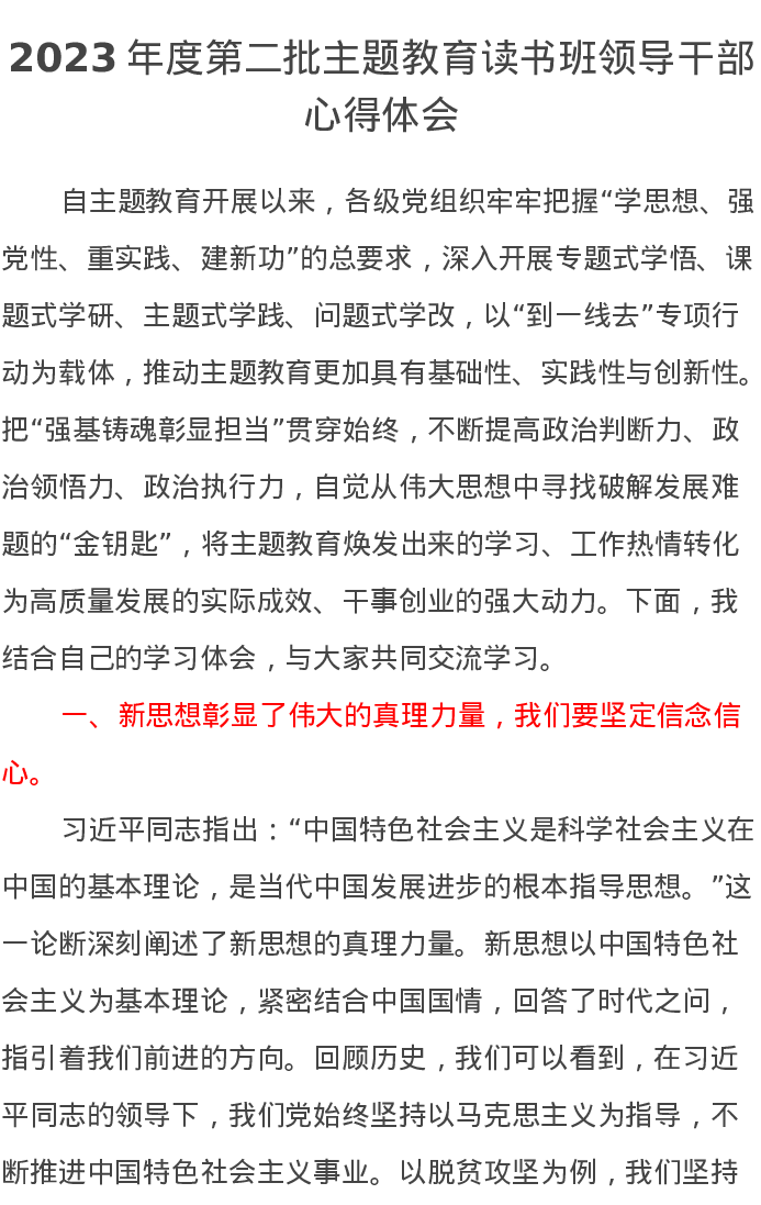 2023年度第二批主题教育读书班领导干部心得体会24(特色社会主义思想)