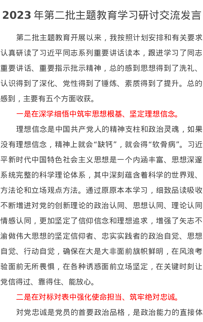 2023年第二批主题教育学习研讨交流发言(特色社会主义思想)