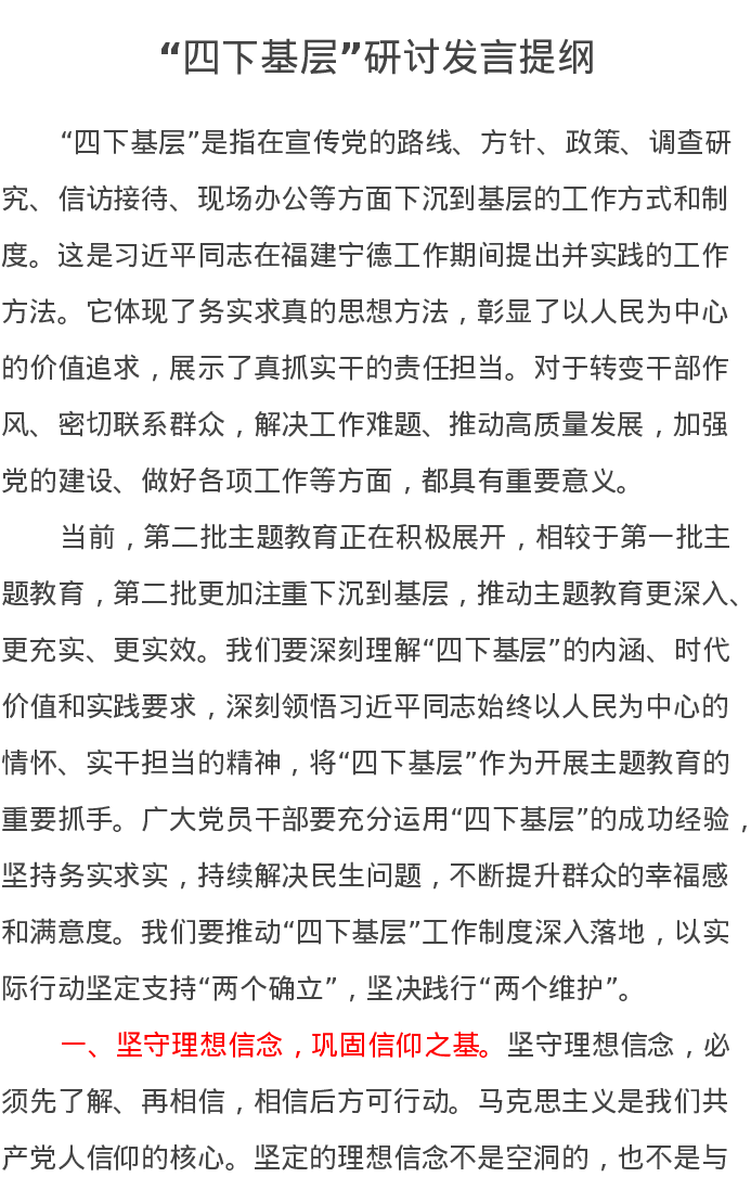 “四下基层”研讨发言提纲(特色社会主义思想主题教育)