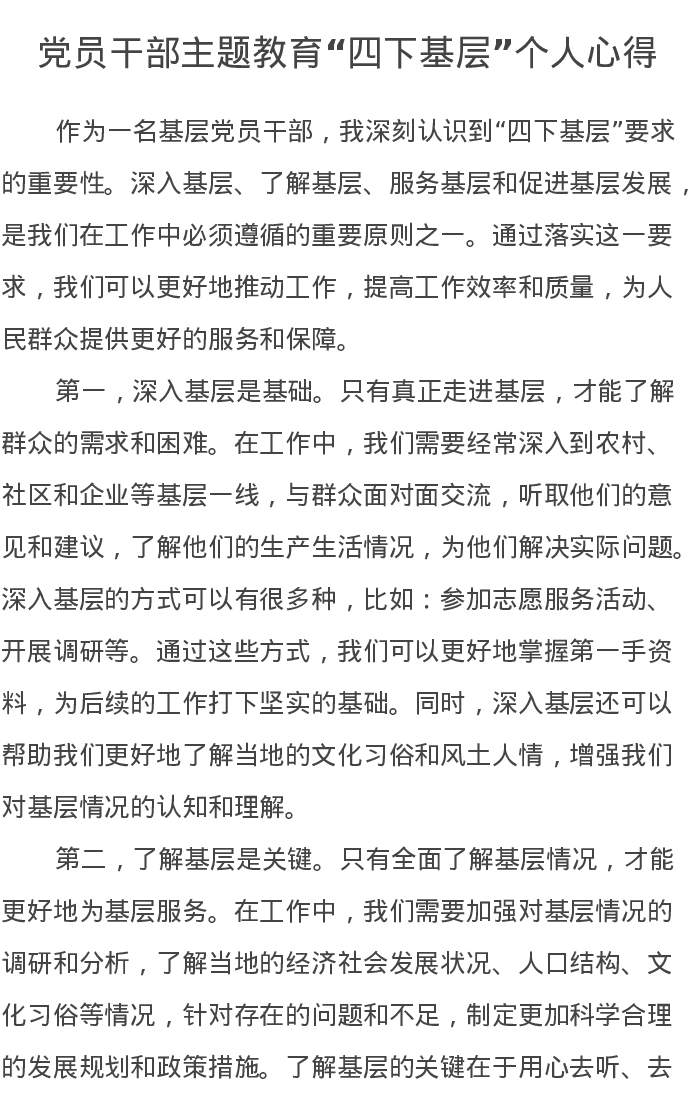 党员干部主题教育“四下基层”个人心得(特色社会主义思想主题教育)