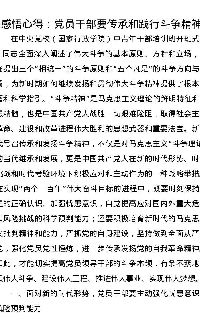 感悟心得:党员干部要传承和践行斗争精神