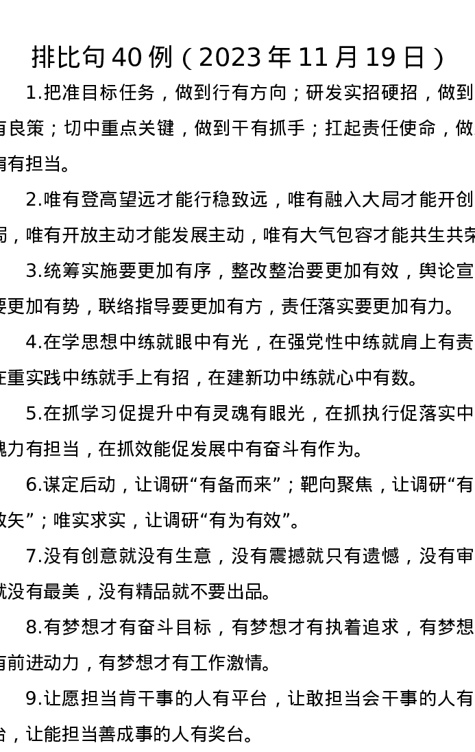排比句40例(2023年11月19日)