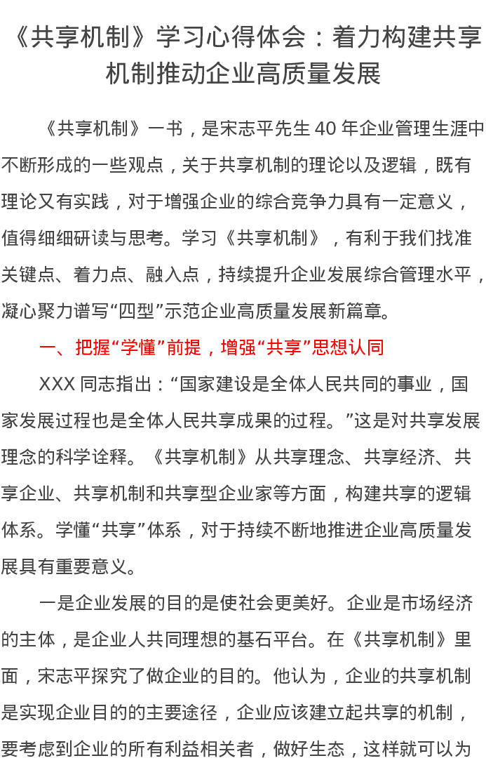 《共享机制》学习心得体会:着力构建共享机制推动企业高质量发展