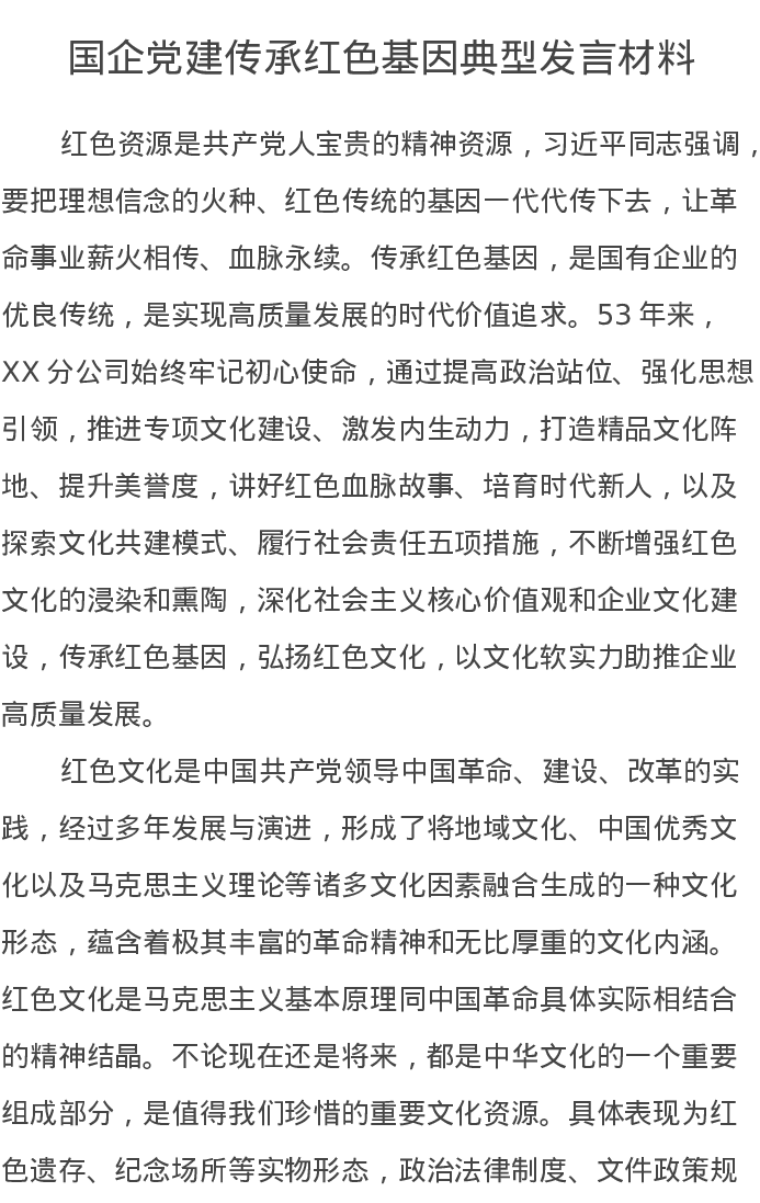 国企党建传承红色基因典型发言材料