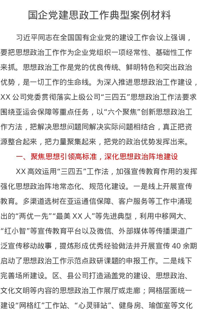 国企党建思政工作典型案例材料