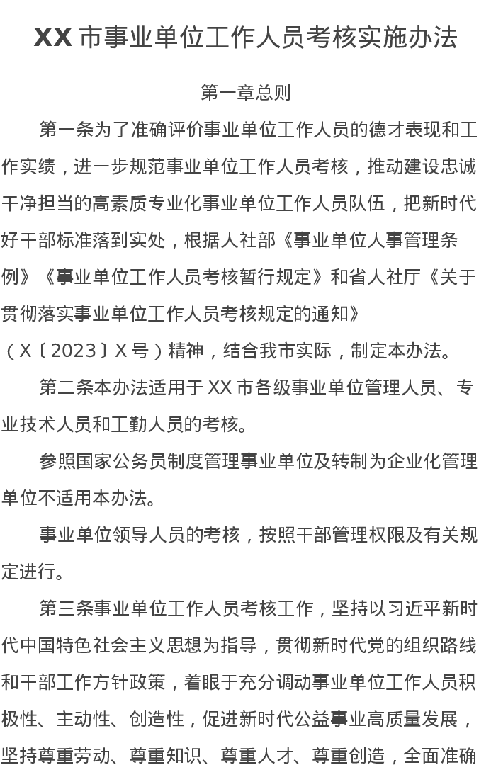XX市事业单位工作人员考核实施办法