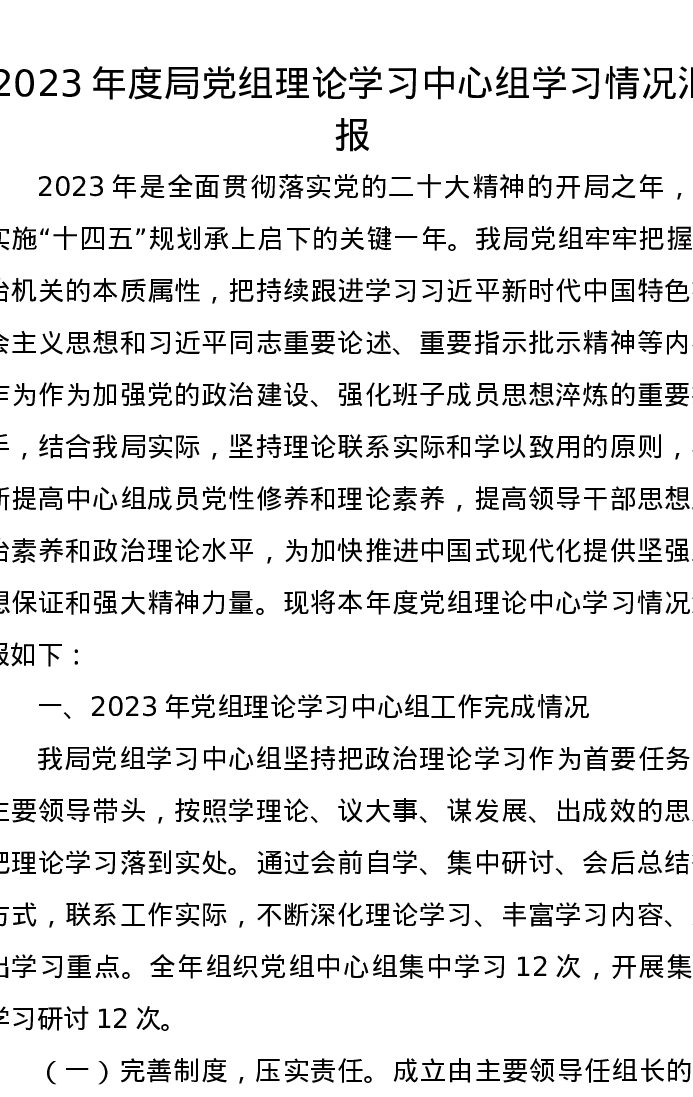 2023年度局党组理论学习中心组学习情况汇报