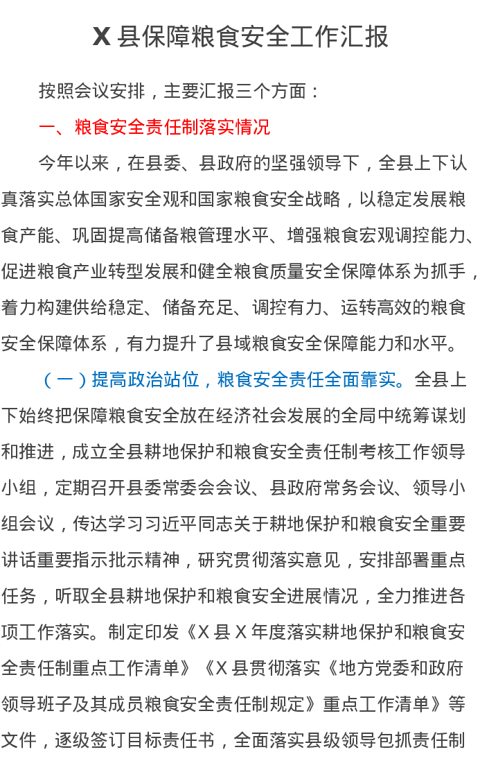 X县保障粮食安全工作汇报
