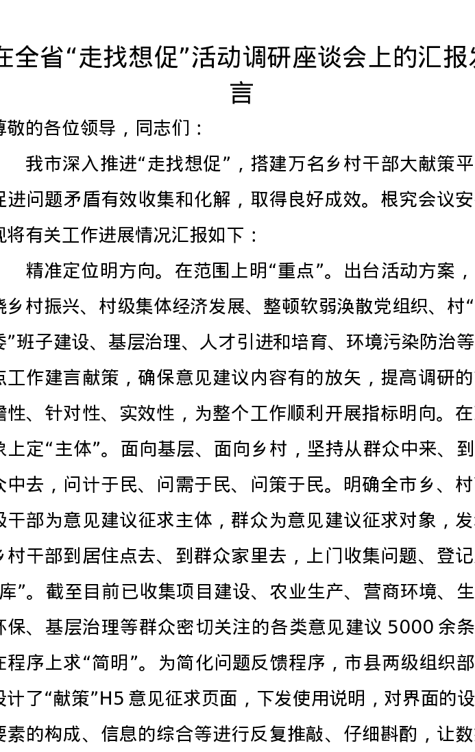 在全省“走找想促”活动调研座谈会上的汇报发言