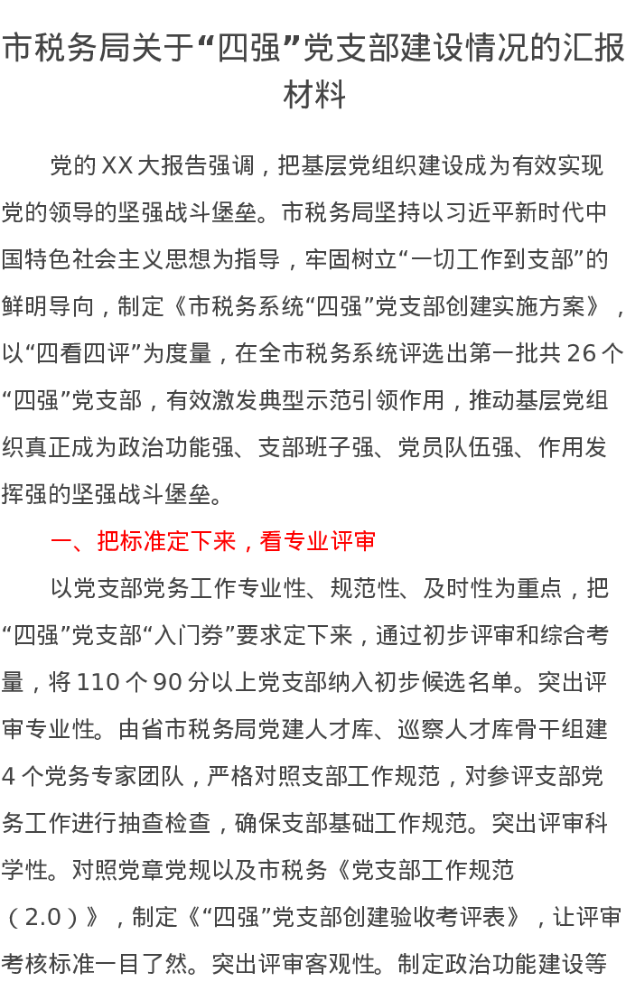 市税务局关于“四强”党支部建设情况的汇报材料