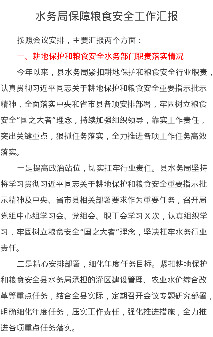 水务局保障粮食安全工作汇报