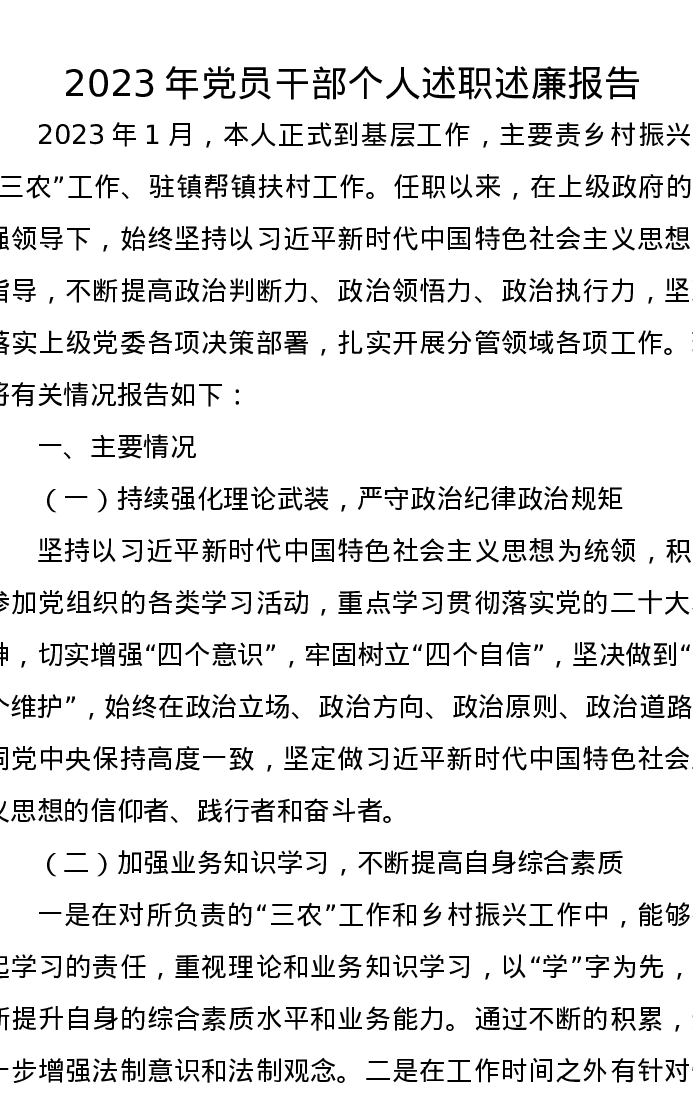 2023年党员干部个人述职述廉报告