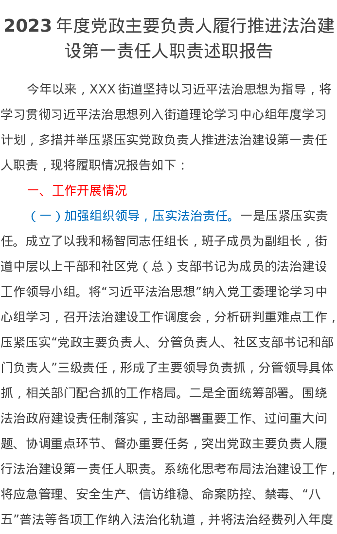 2023年度党政主要负责人履行推进法治建设第一责任人职责述职报告