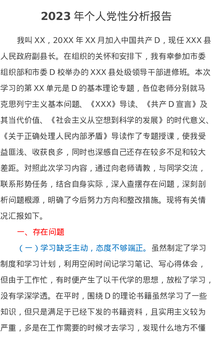 2023年个人党性分析报告