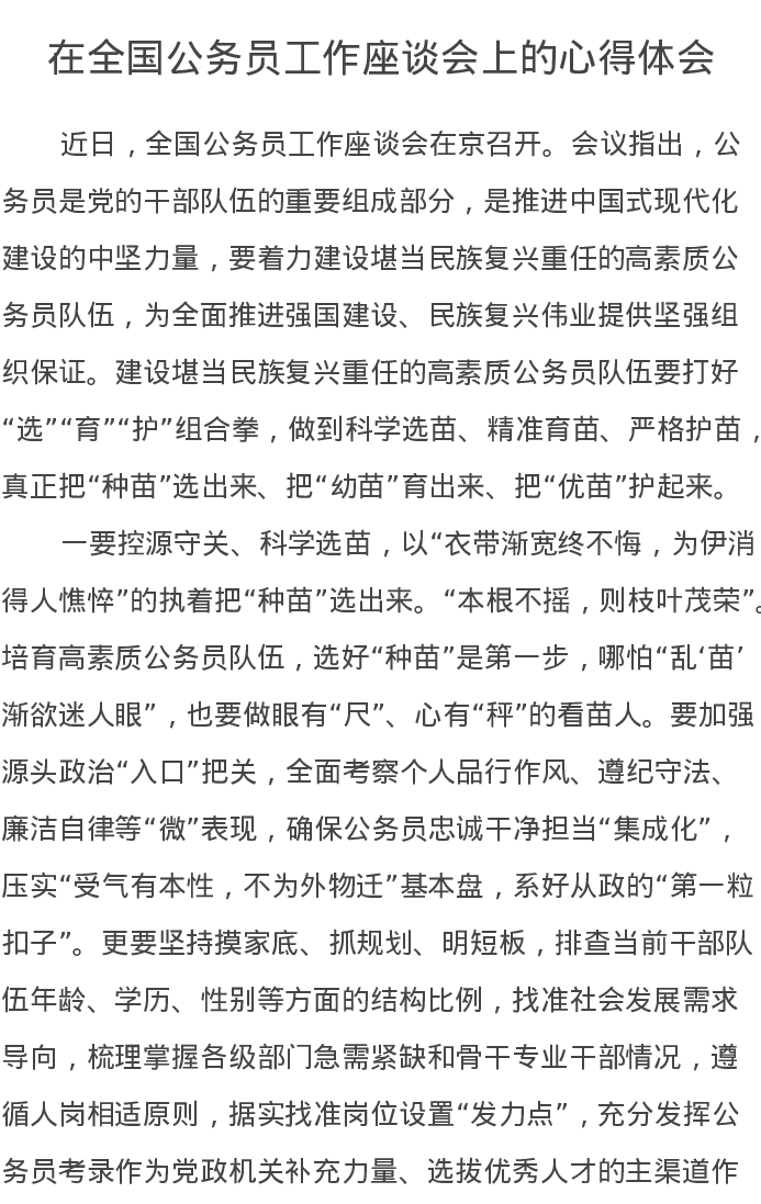 在全国公务员工作座谈会上的心得体会