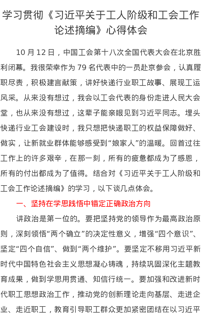 学习贯彻《习近平关于工人阶级和工会工作论述摘编》心得体会