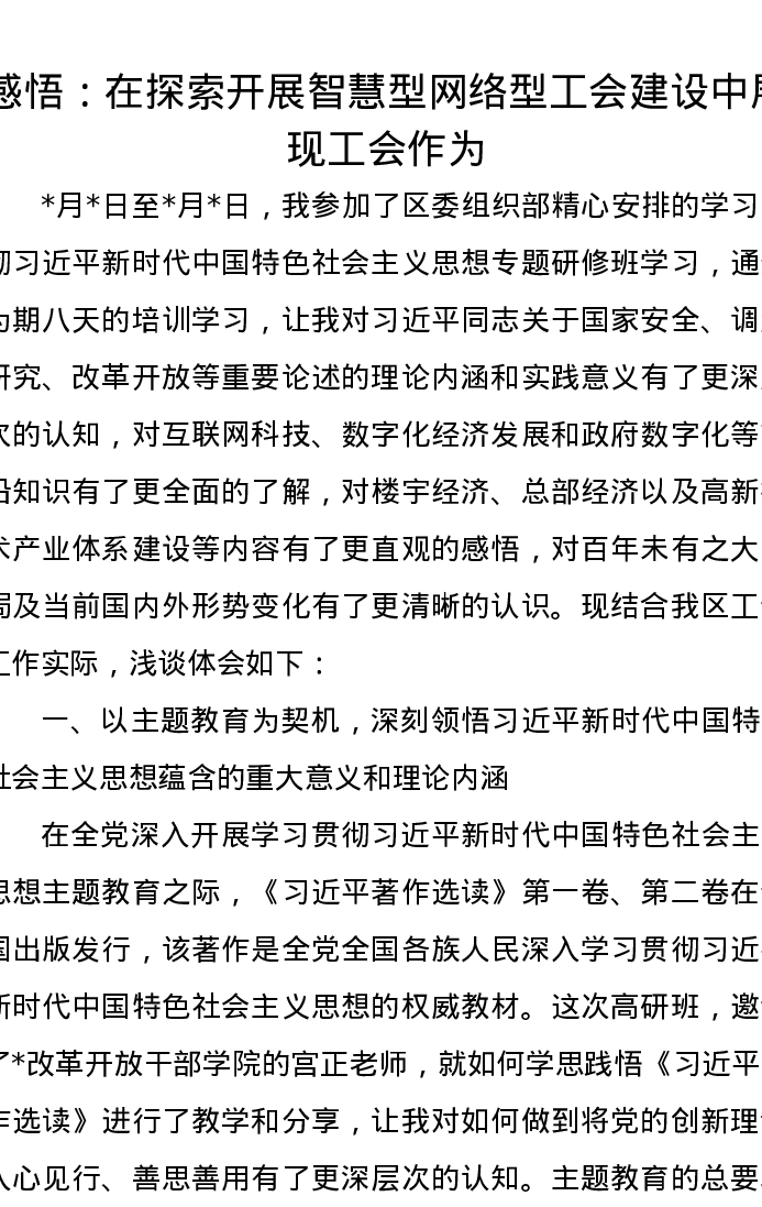 心得感悟:在探索开展智慧型网络型工会建设中展现工会作为