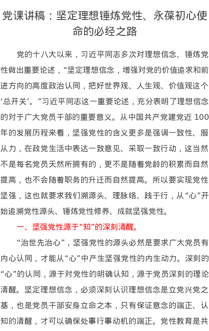 党课讲稿:坚定理想锤炼党性、永葆初心使命的必经之路