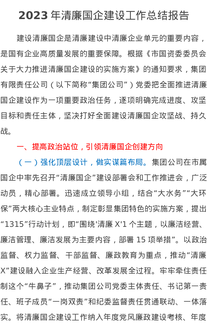 2023年清廉国企建设工作总结报告