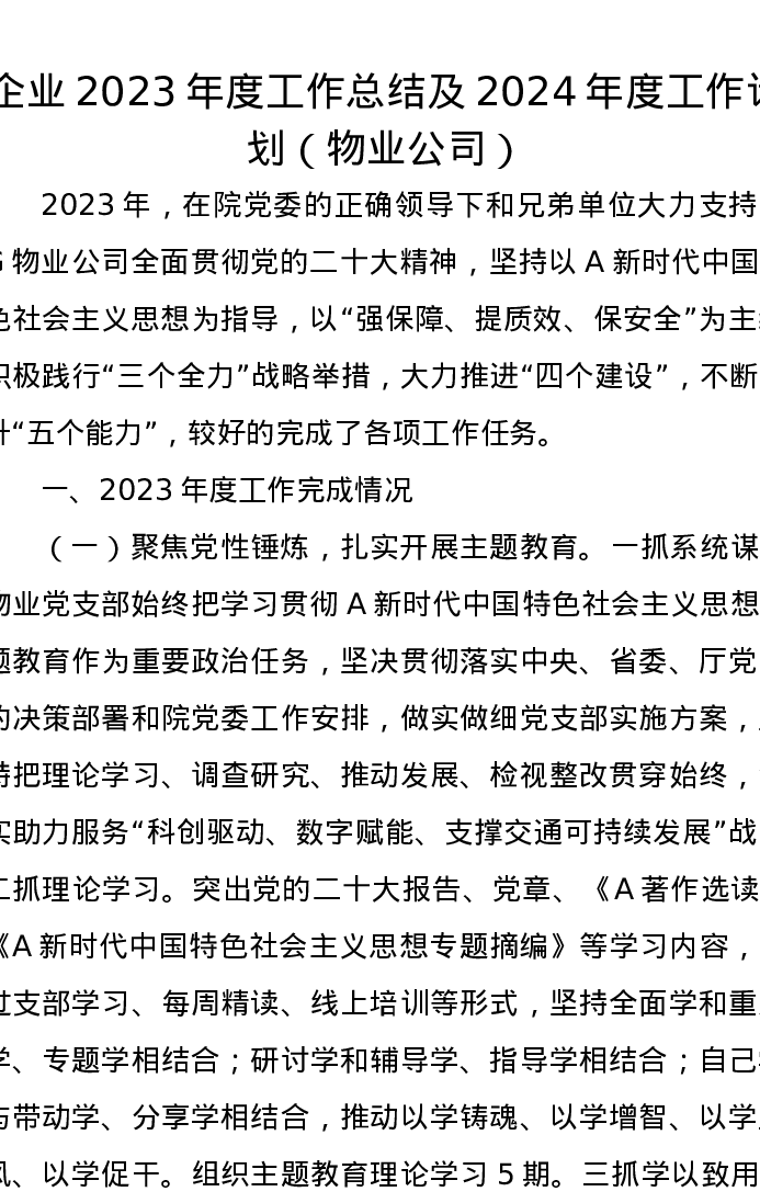 企业2023年度工作总结及2024年度工作计划(物业公司)