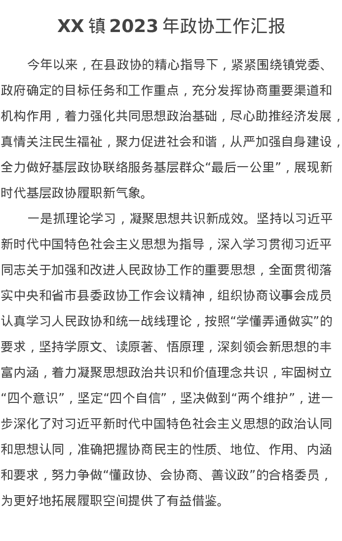 XX镇2023年政协工作汇报