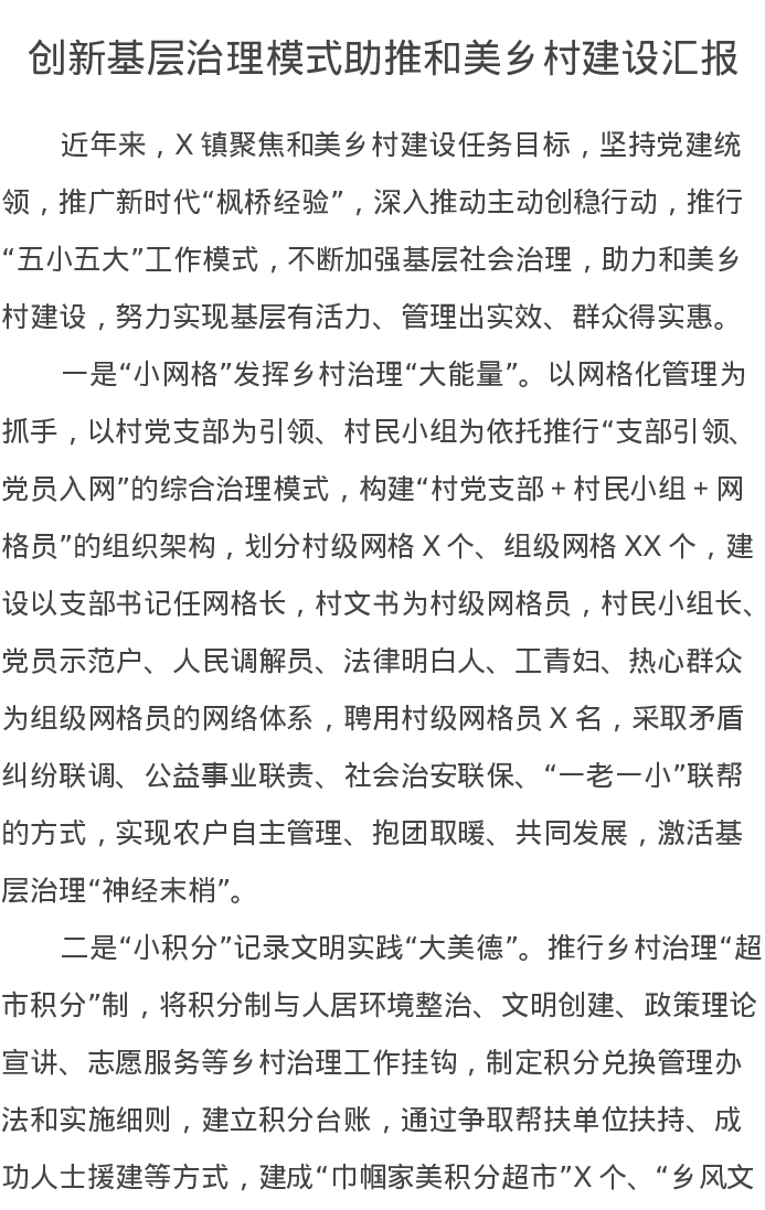 创新基层治理模式助推和美乡村建设汇报