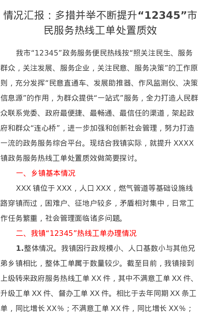 情况汇报:多措并举不断提升“12345”市民服务热线工单处置质效