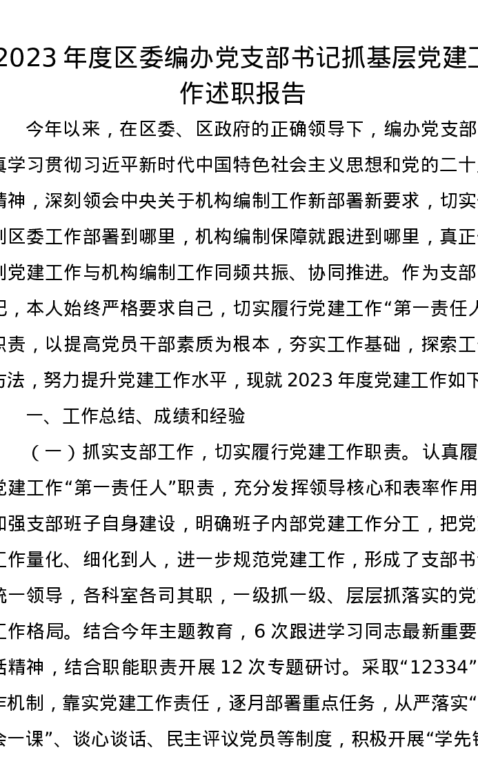 2023年度区委编办党支部书记抓基层党建工作述职报告