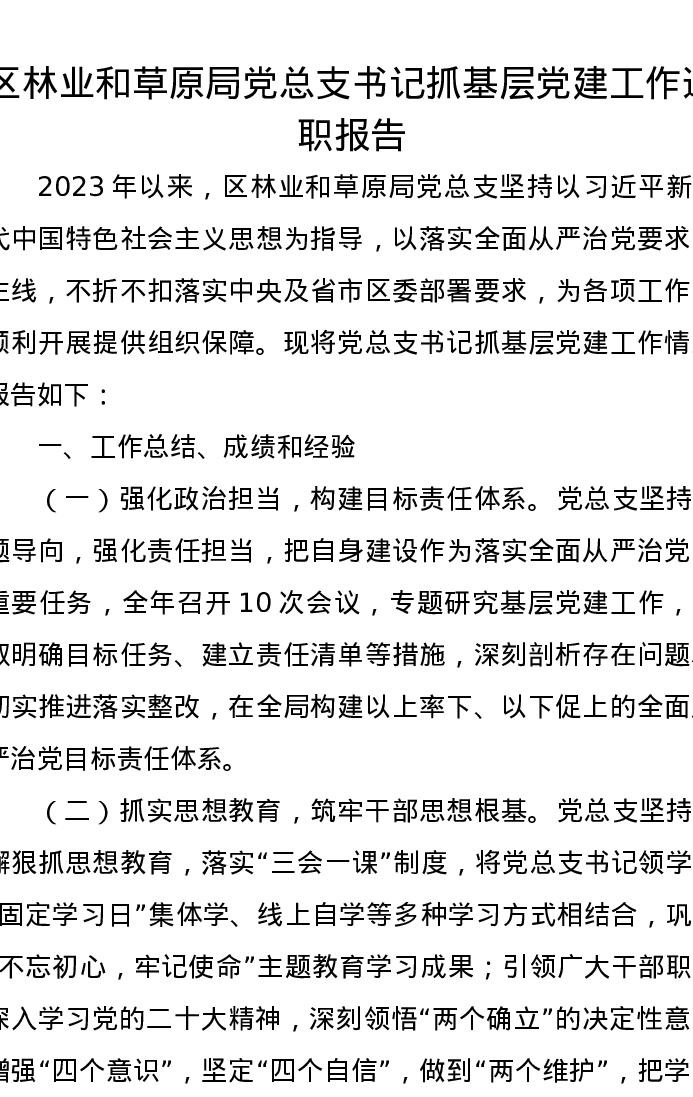 区林业和草原局党总支书记抓基层党建工作述职报告