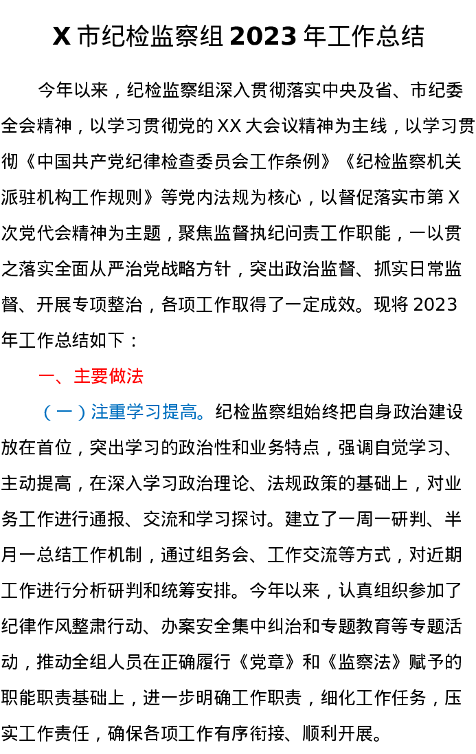 X市纪检监察组2023年工作总结