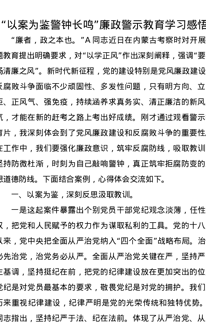 “以案为鉴警钟长鸣”廉政警示教育学习感悟