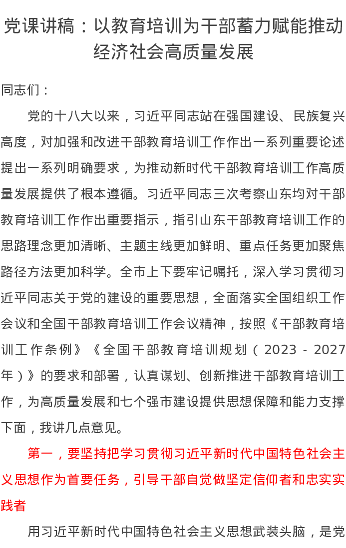 党课讲稿:以教育培训为干部蓄力赋能推动经济社会高质量发展