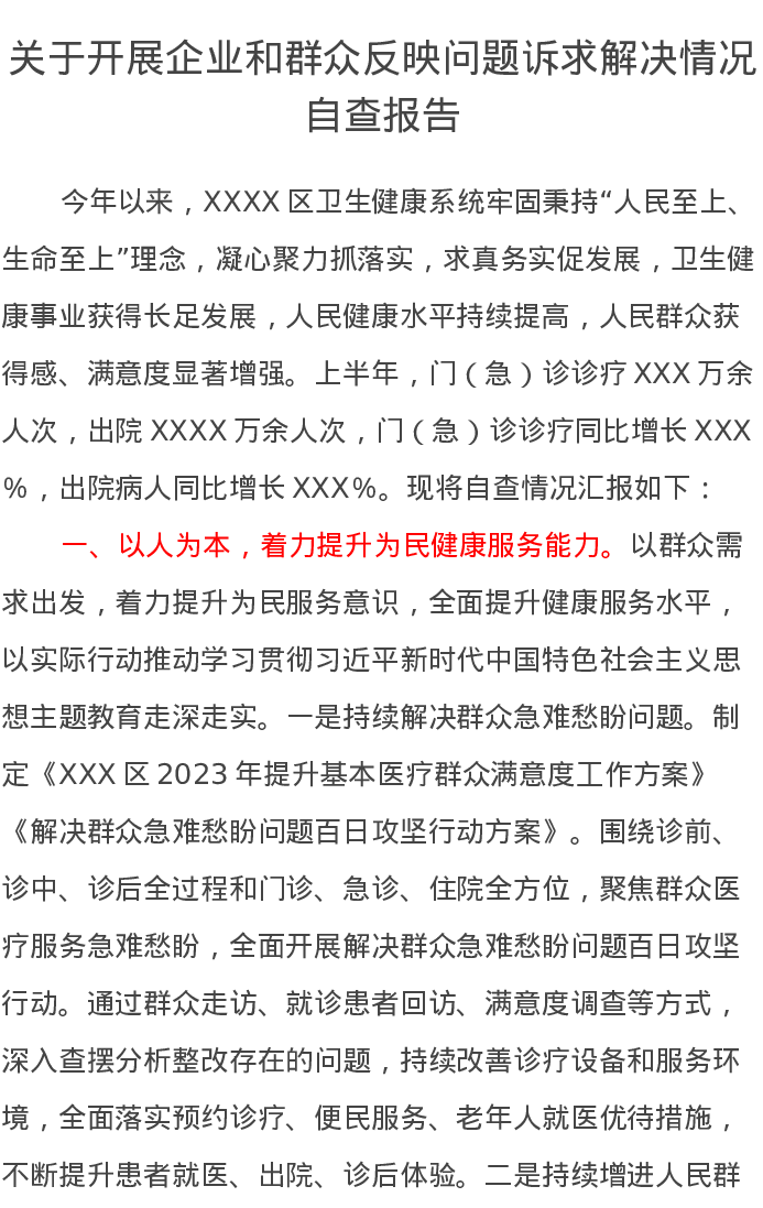 关于开展企业和群众反映问题诉求解决情况自查报告