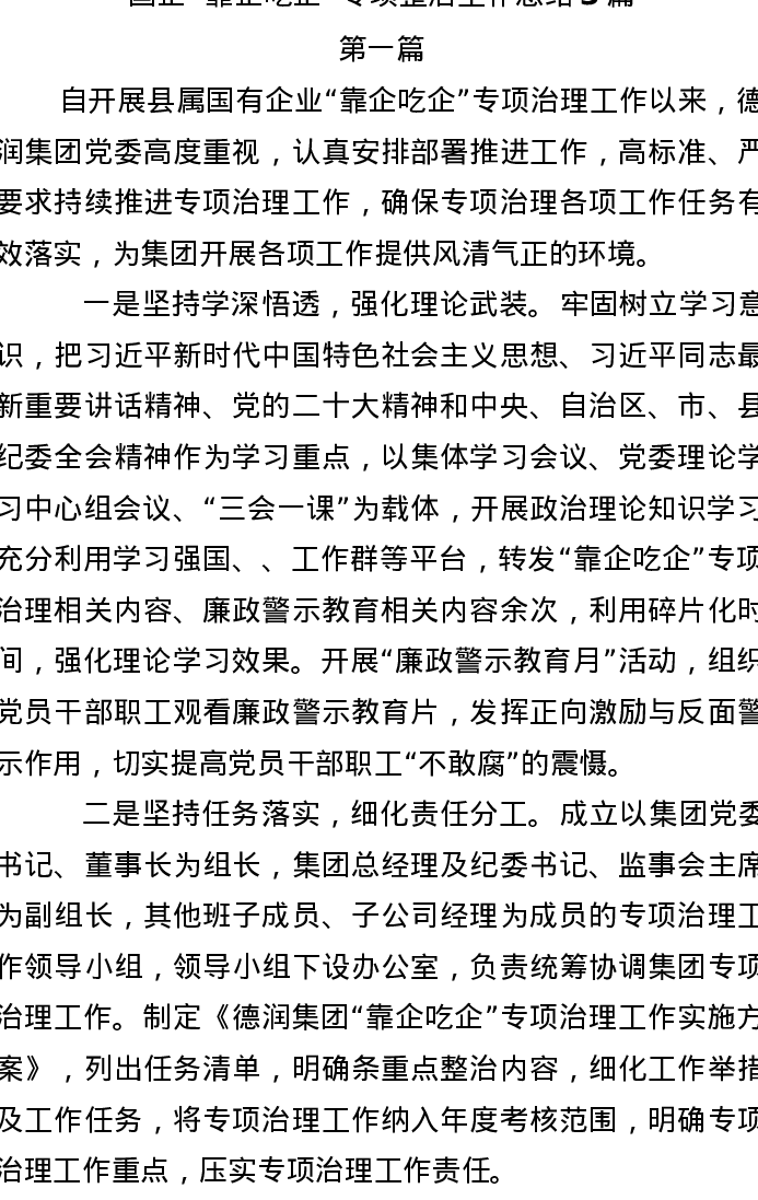 汇编:国企“靠企吃企”专项整治工作总结3篇