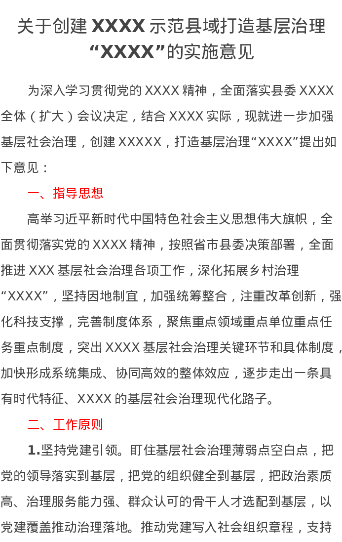 关于创建XXXX示范县域打造基层治理“XXXX”的实施意见