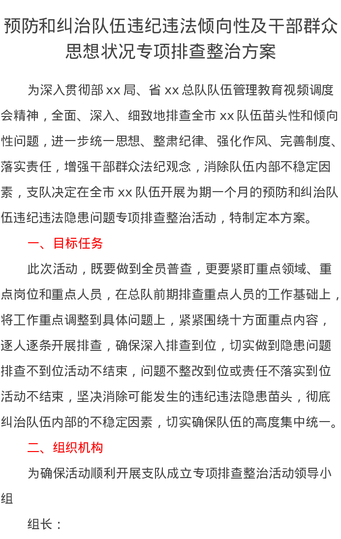 预防和纠治队伍违纪违法倾向性及干部群众思想状况专项排查整治方案