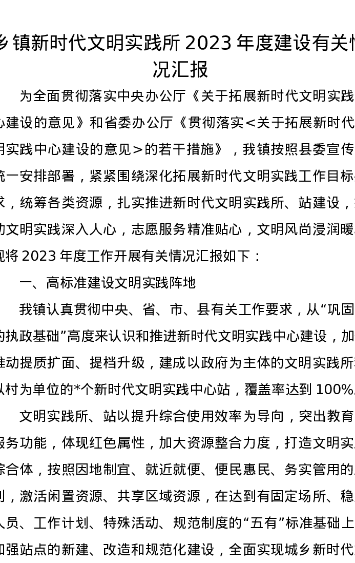 乡镇新时代文明实践所2023年度建设有关情况汇报