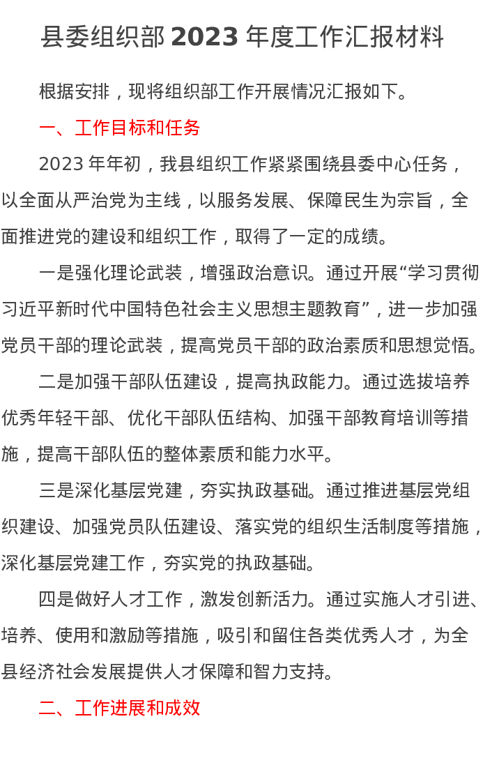 县委组织部2023年度工作汇报材料