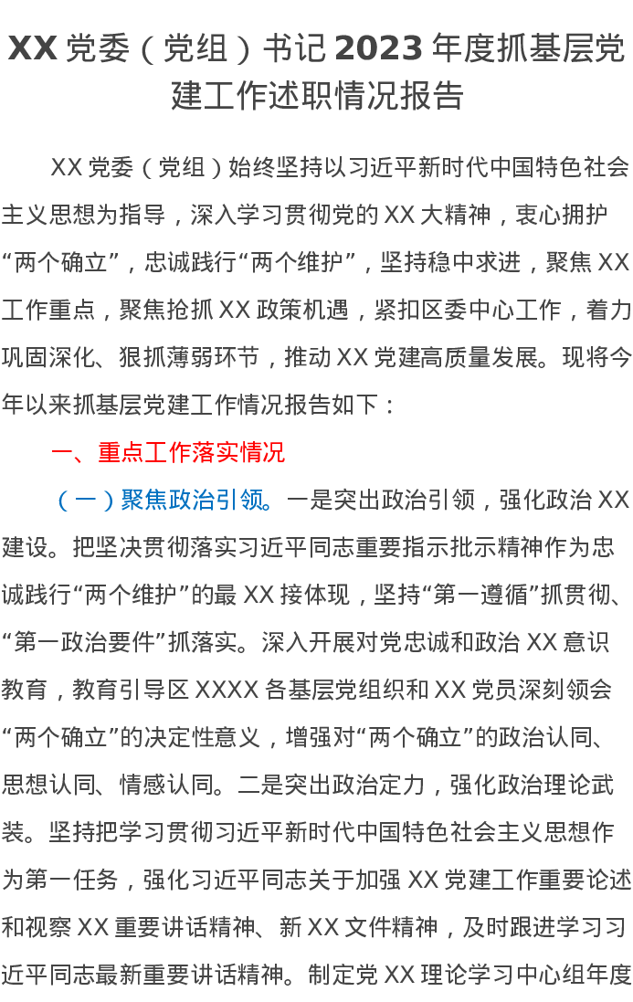 XX党委(党组)书记2023年度抓基层党建工作述职情况报告