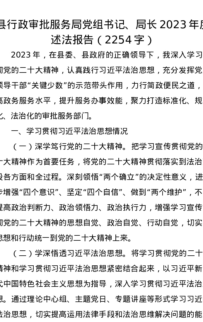 县行政审批服务局党组书记、局长2023年度述法报告