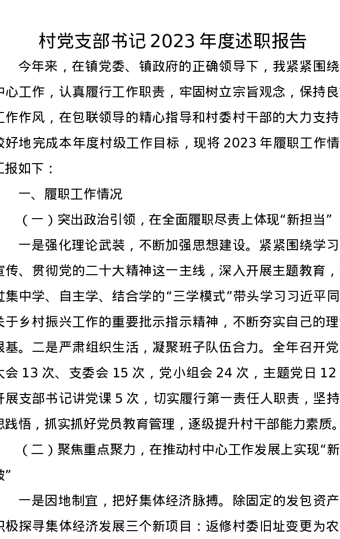 村党支部书记2023年度述职报告