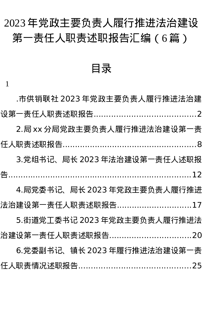 汇编:2023年党政主要负责人履行推进法治建设第一责任人职责述职报告6篇