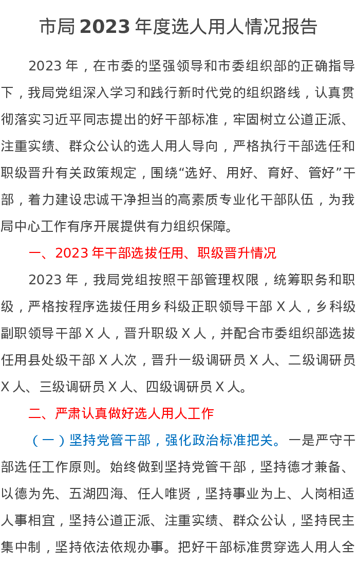 市局2023年度选人用人情况报告