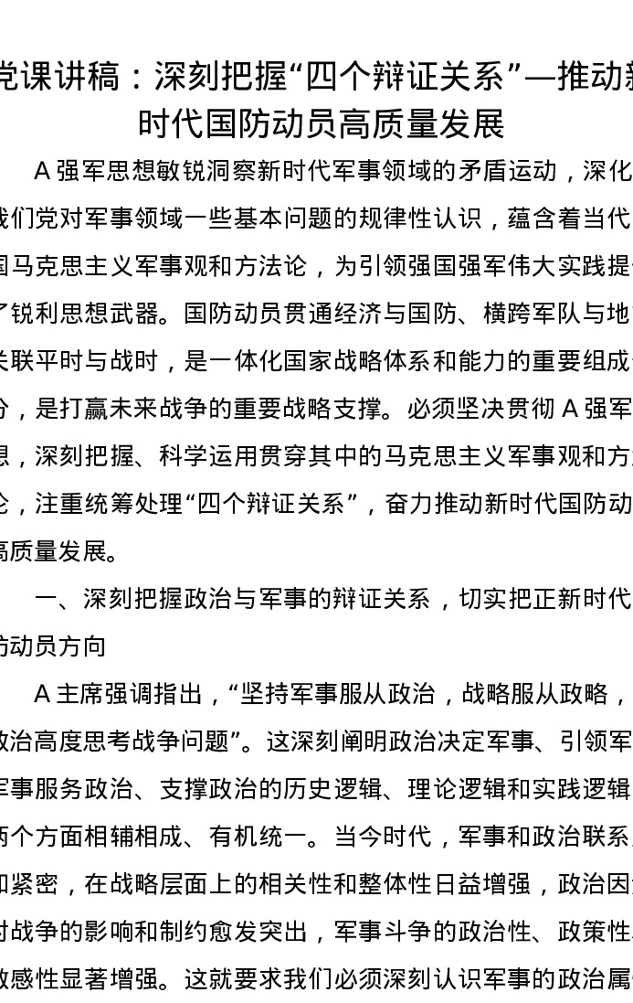 党课讲稿:深刻把握“四个辩证关系”—推动新时代国防动员高质量发展