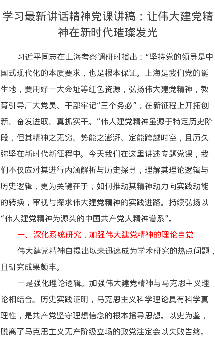 学习最新讲话精神党课讲稿:让伟大建党精神在新时代璀璨发光