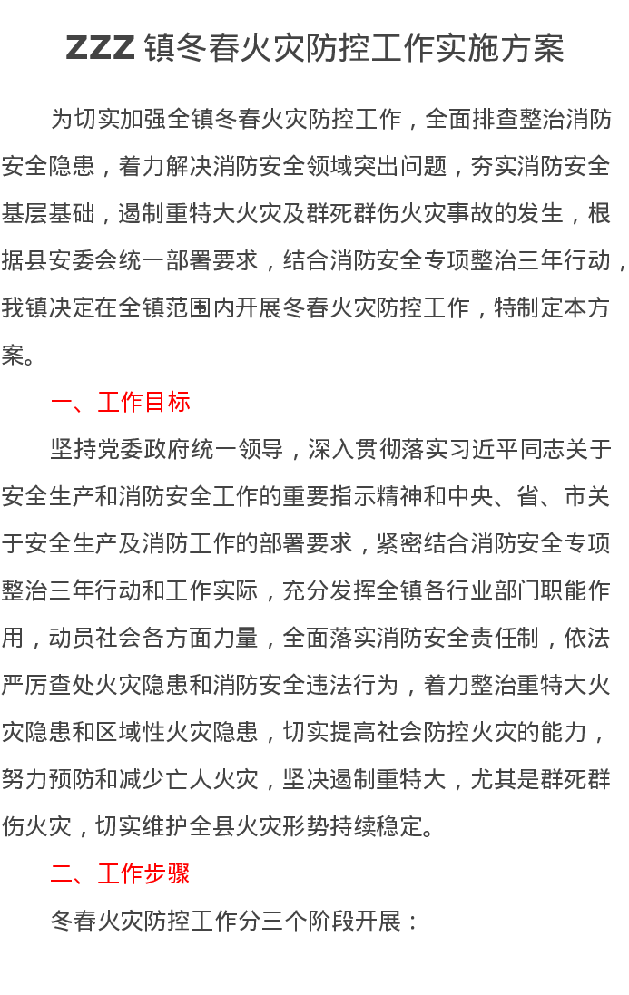 ZZZ镇冬春火灾防控工作实施方案