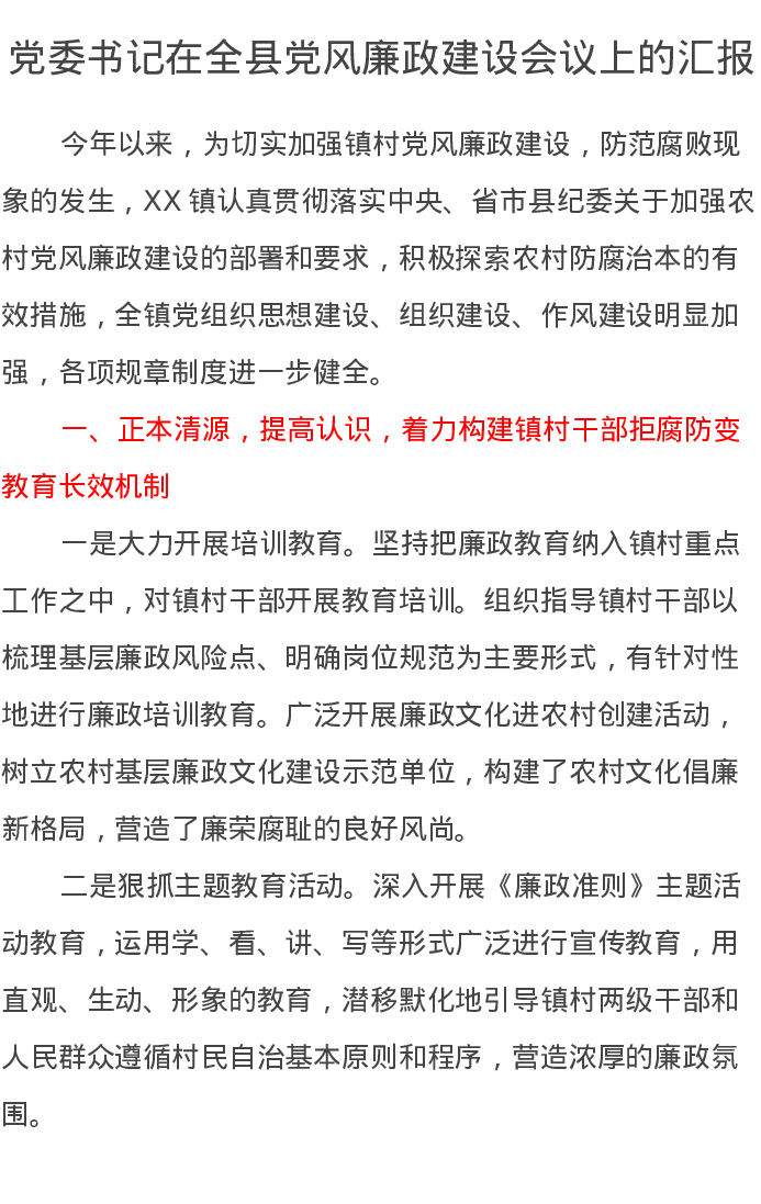 党委书记在全县党风廉政建设会议上的汇报