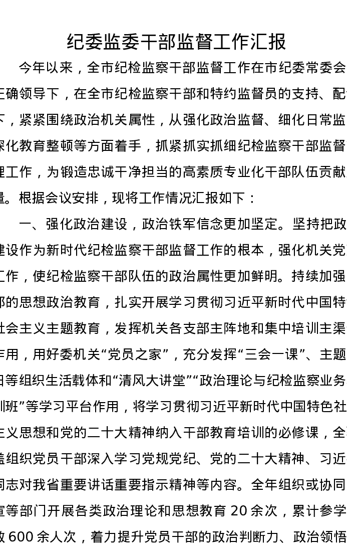 纪委监委干部监督工作汇报
